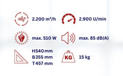 - Effizienz: Hohe Umwälzleistung bei einer moderaten Leistungsaufnahme von nur 510 Watt.