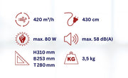 | Umluftmenge | 420 m³/h |